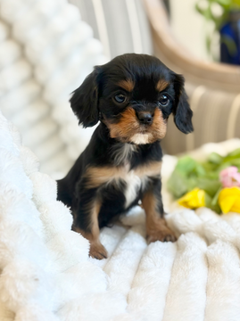 Allow us to introduce Mocha, our beautiful chocolate tricolor Cavalier! She has a rich chocolate coat and enchanting light eyes that make her stand out in any crowd. Mocha is a tiny princess with a huge heart. She is playful and affectionate, ready for whatever you are in the mood for. She is the perfect companion for all kinds of experiences, whether you're on adventures or enjoying cozy, relaxing evenings at home. Once you have the pleasure of meeting her, you’ll undoubtedly be in love, and will find yourself eager to create countless unforgettable memories together!