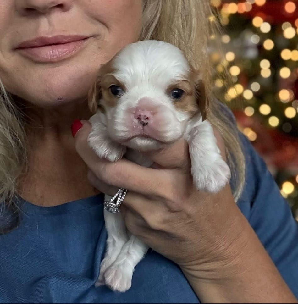 Are you looking for a furry friend who will surround you with love and joy? Meet Maisie, our precious Blenheim Cavalier King Charles Spaniel puppy! Born on November 17, this sweetheart is ready to bring her gentle spirit into your home as you welcome the New Year.